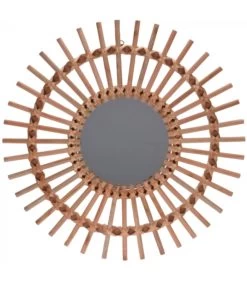 Miroir rond en bois naturel qui habille votre mur. Idéal pour une entrée ou une salle de bain.