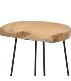 Tabouret De Bar En Métal Noir Et Assise En Teck – 40x32x81cm