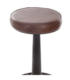 ATMOSPHERA Tabouret De Bar Rond Cuir Marron Et Métal Noir 35x35x80.5cm