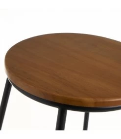 Tabouret De Bar Rond En Métal Noir Et Bois – 40x41x70.5cm