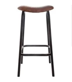 ATMOSPHERA Tabouret De Bar Vintage Cuir Marron Et Métal Noir 41×38.5x75cm