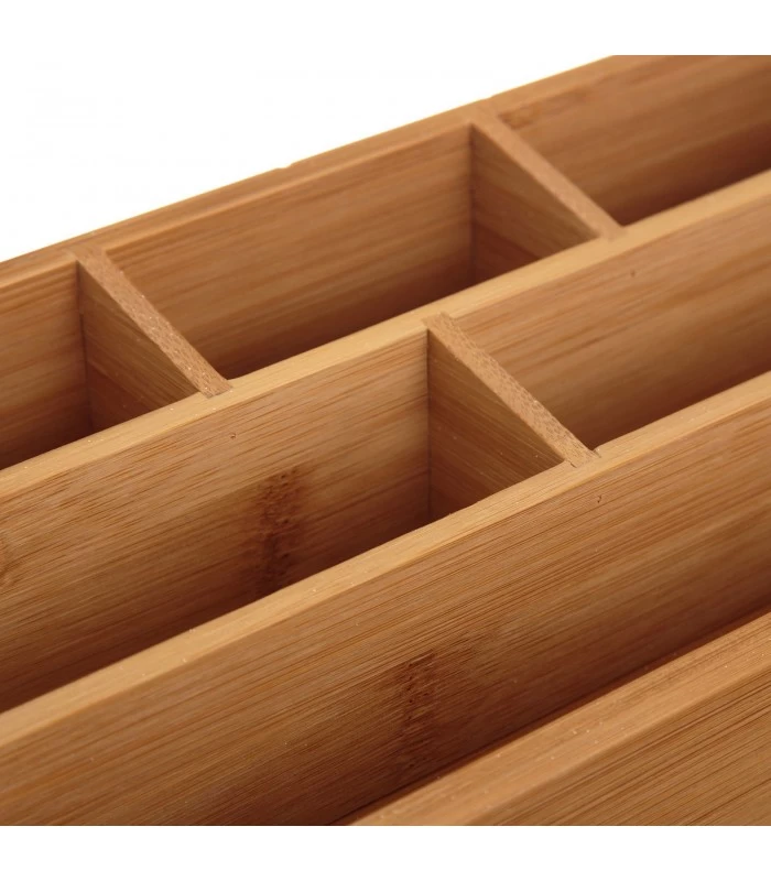 Très beau rangement en bambou pour votre maquillage. Ce rangement se compose de nombreux compartiments et d’un tiroir permettant un rangement efficace de votre salle de bain. Les différents compartiments sont de plusieurs tailles pour ranger pinceaux, rouges à lèvres, crayons…