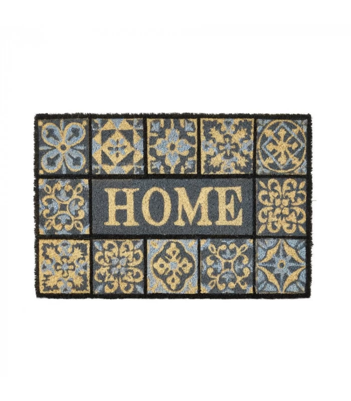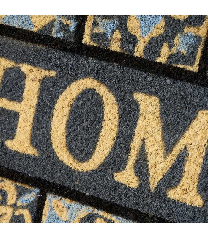 Paillasson en coco gris avec inscription ‘Home’.