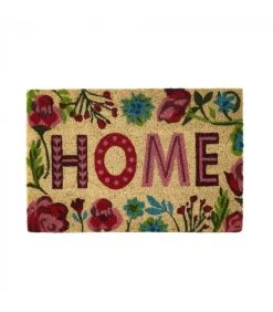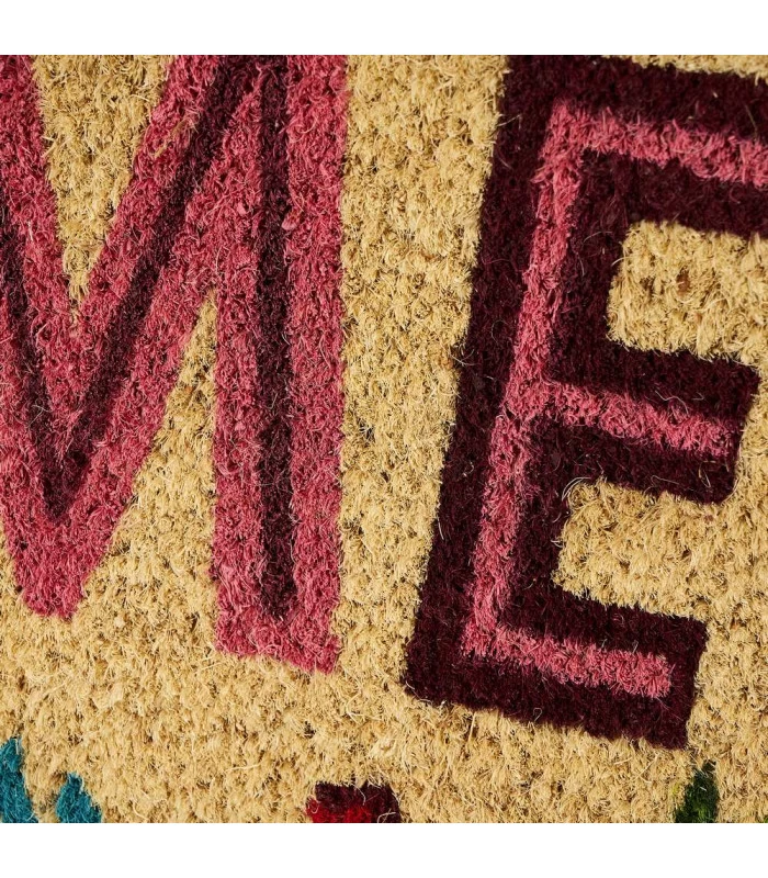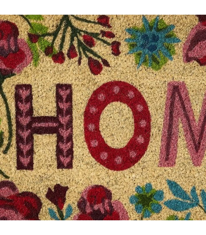 Paillasson en coco avec fleurs multicolores et inscription home.