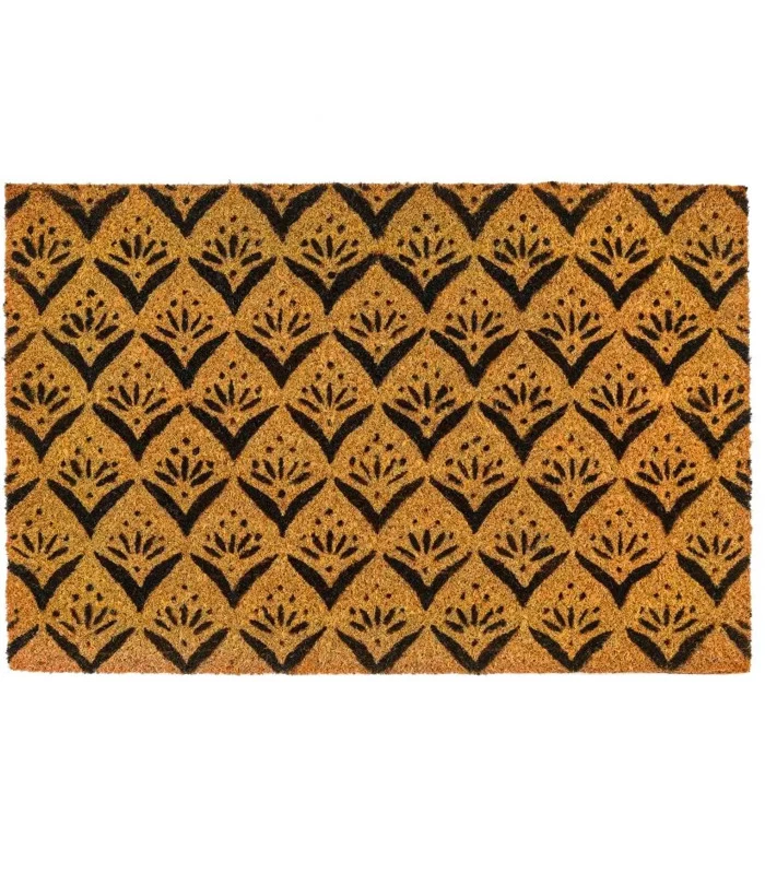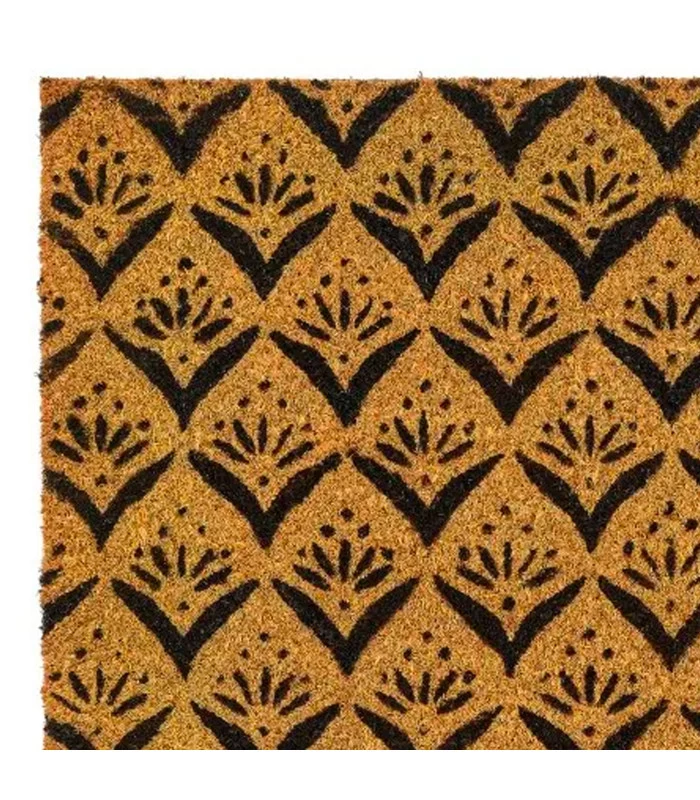 Paillasson en coco avec motifs fleurs noires.
