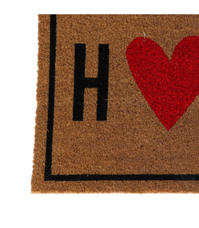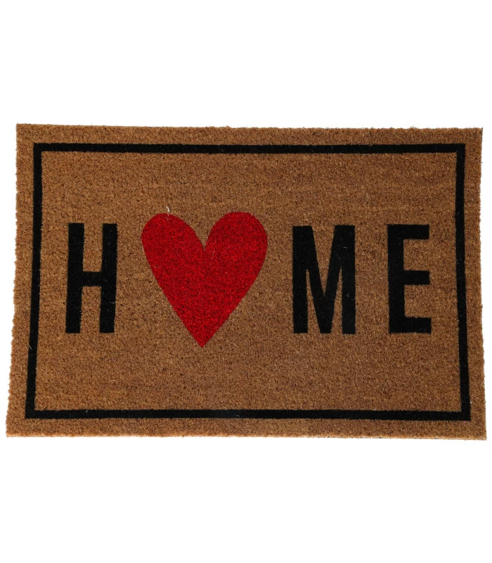 Paillasson en coco avec inscription home et un coeur.
