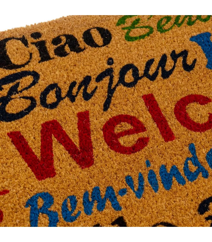 Paillasson en coco multilingue.