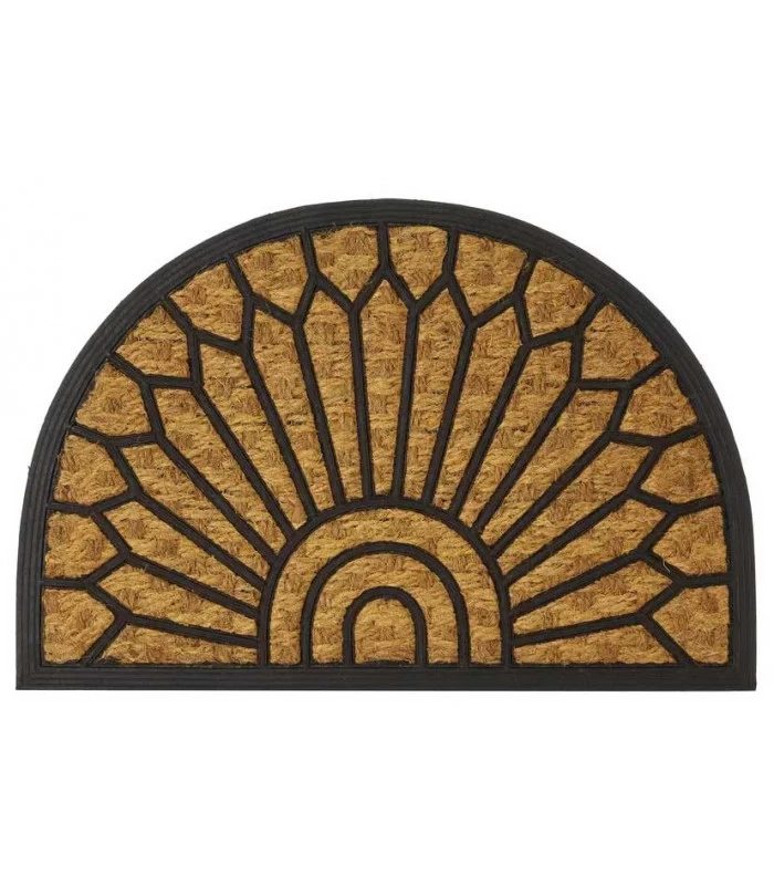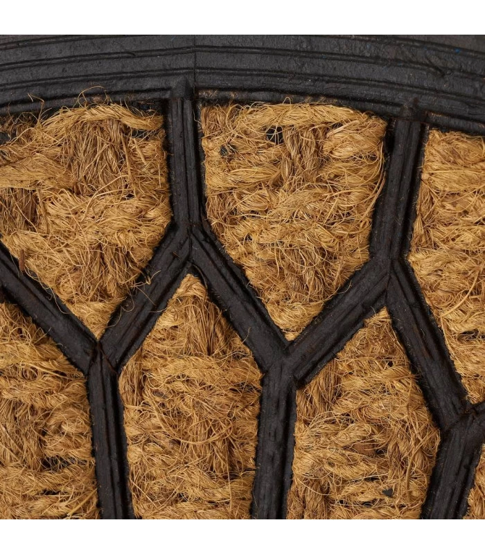 Paillasson demi lune en caoutchouc et fibres de coco pour entrée.