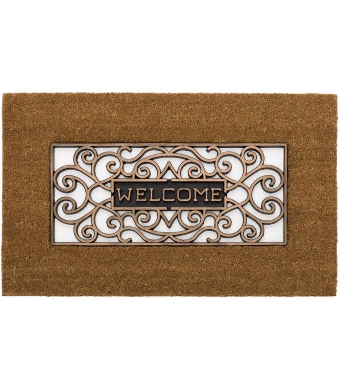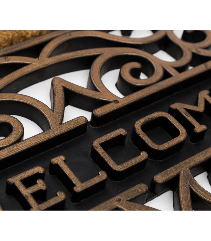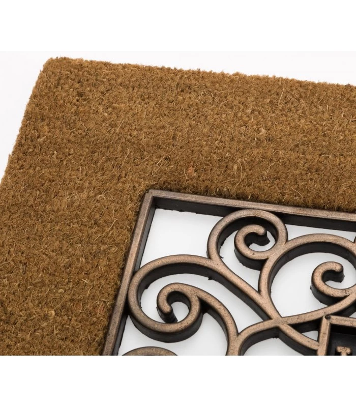 Paillasson en coco et caoutchouc doré façon vieil or/laiton.