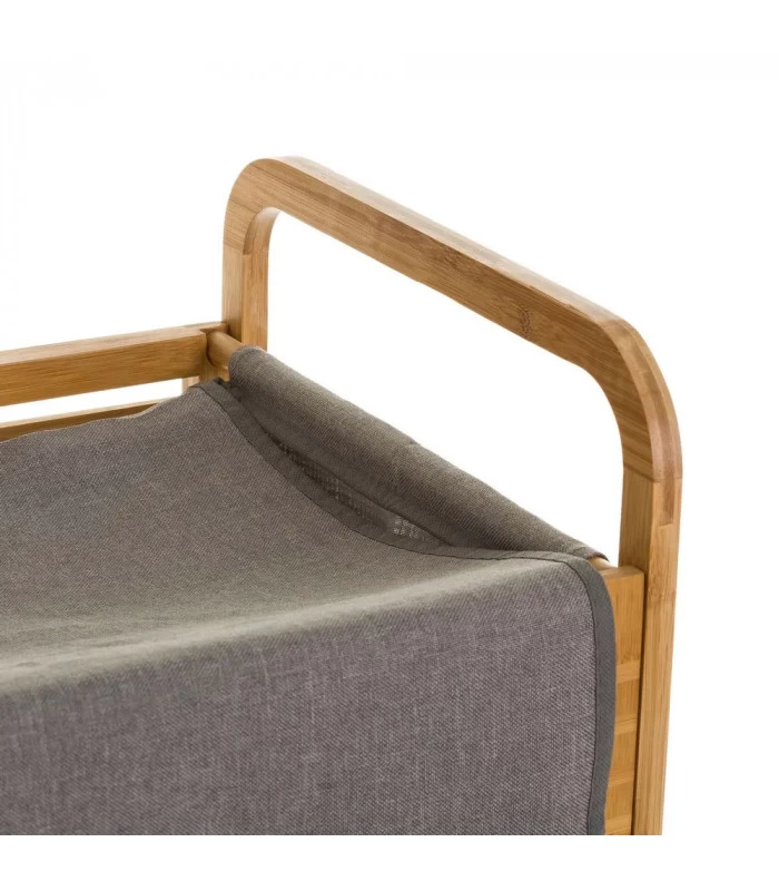 Panier à linge en tissu gris avec structure en bambou. Un panier à linge élégant et très logeable.