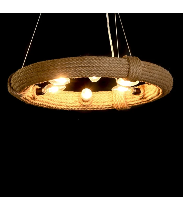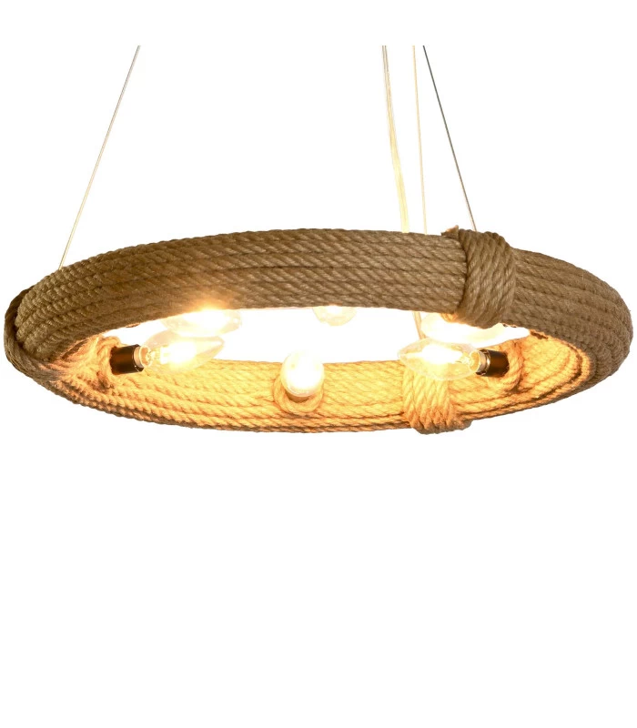 Suspension ronde originale et chaleureuse en corde naturelle. Idéale pour une décoration de bord de mer.