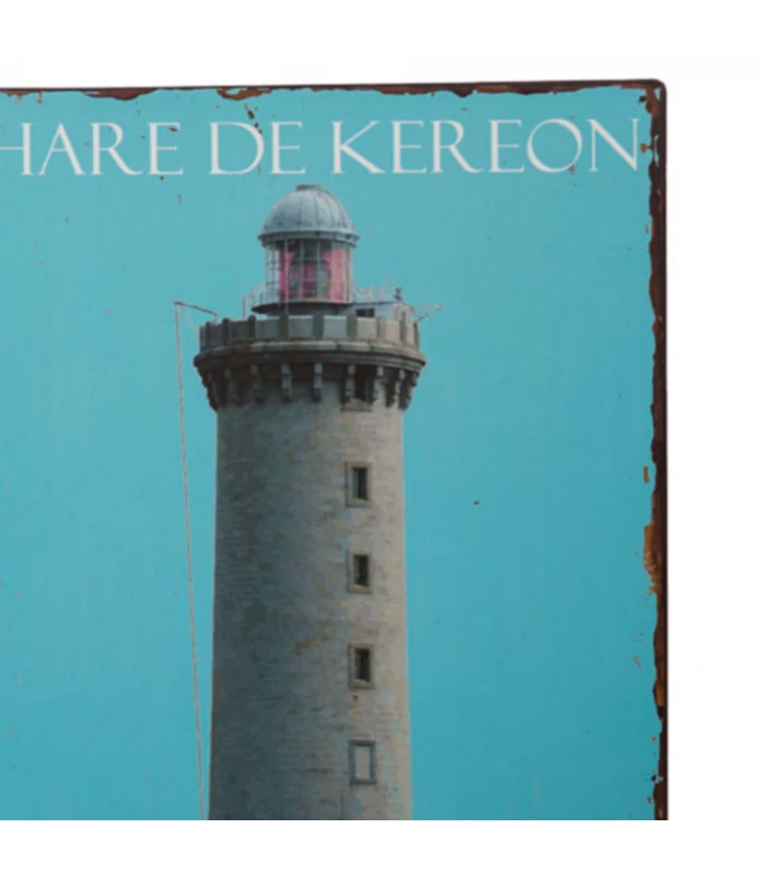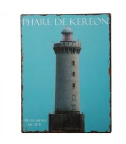 Plaque décorative vintage murale pour décoration bord de mer (phare de kereon/finistère, Bretagne).