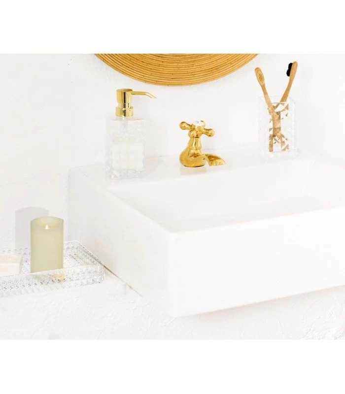 Plateau de présentation pour salle de bain en verre pour disposer savon, bougie, maquillage… Un élément très décoratif et utile pour présenter en toute élégance les accessoires de la salle de bain.