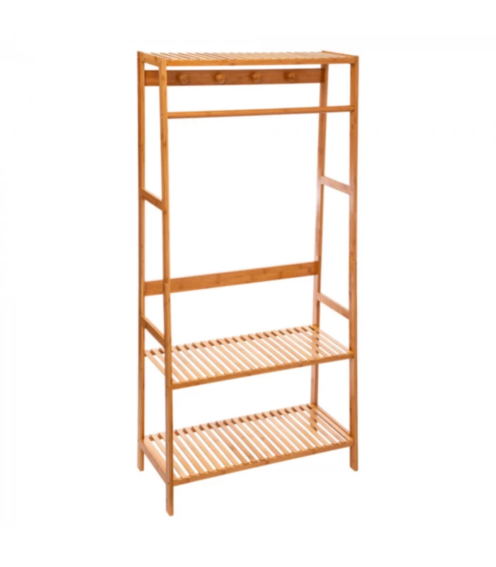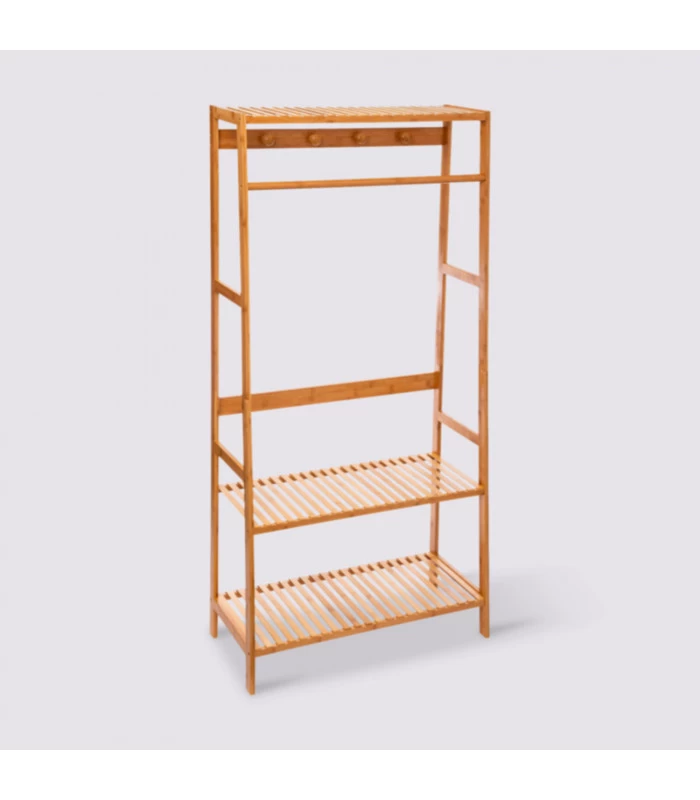 Portant vêtements en bambou avec étagères et patères. Très pratique pour ranger vêtements, chapeaux, manteaux, chaussures…