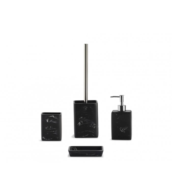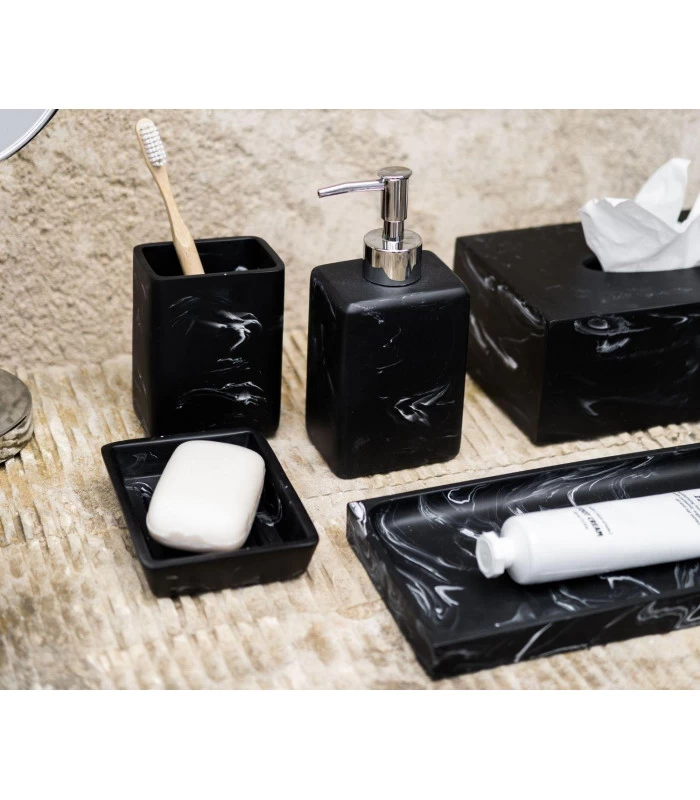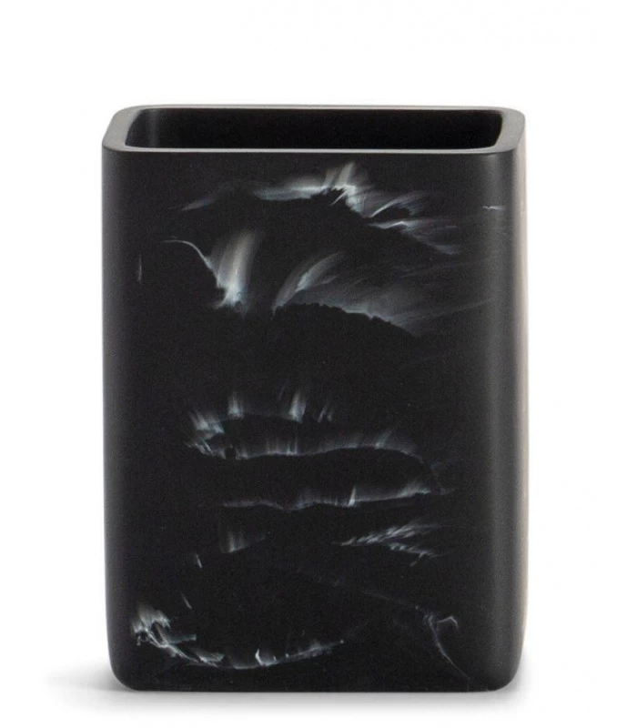 Porte brosses à dents en polyrésine effet marbre noir à assortir avec les autres éléments de cette gamme pour la salle de bain.