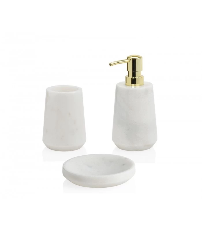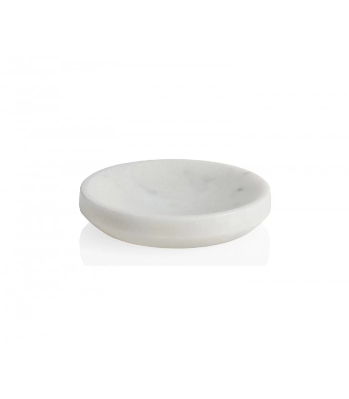 Porte savon rond en marbre blanc, à assortir avec les autres éléments en marbre blanc pour salle de bain.