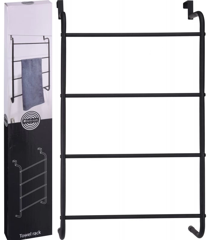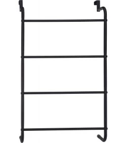 Porte serviettes de porte en métal noir à 4 barres. Un porte serviettes gain de place sobre et élégant.