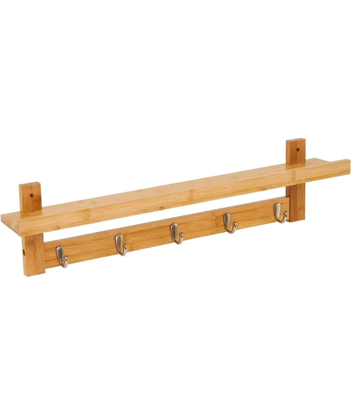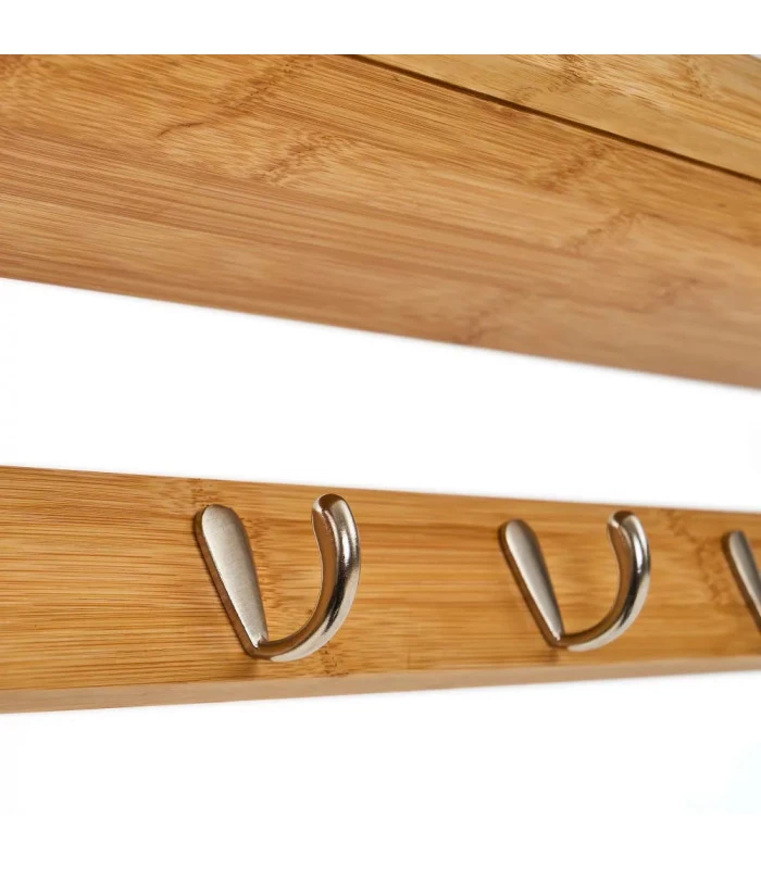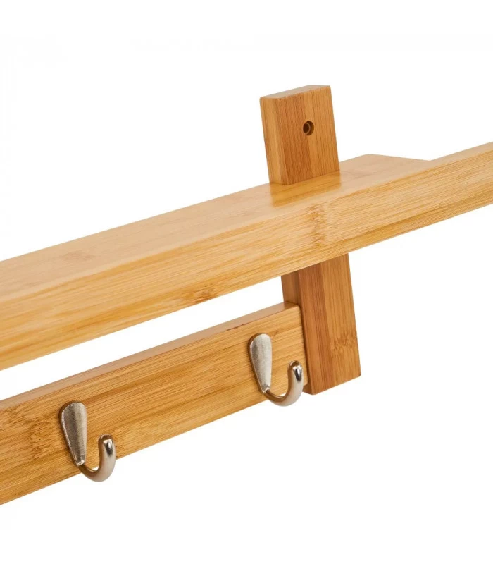 Portemanteau mural bambou comprenant 5 crochets et une étagère.