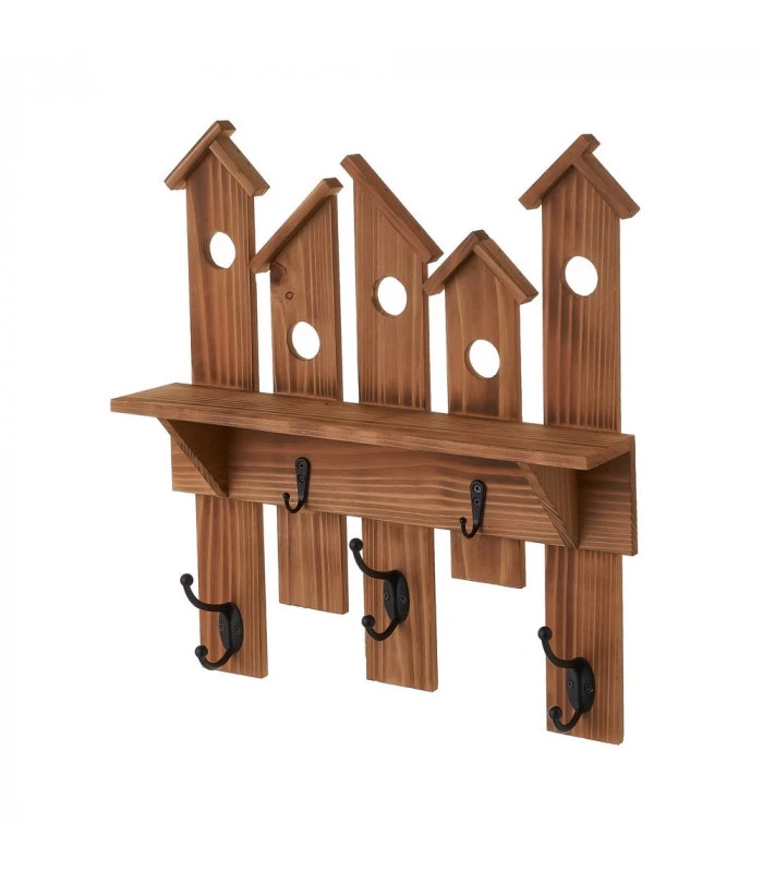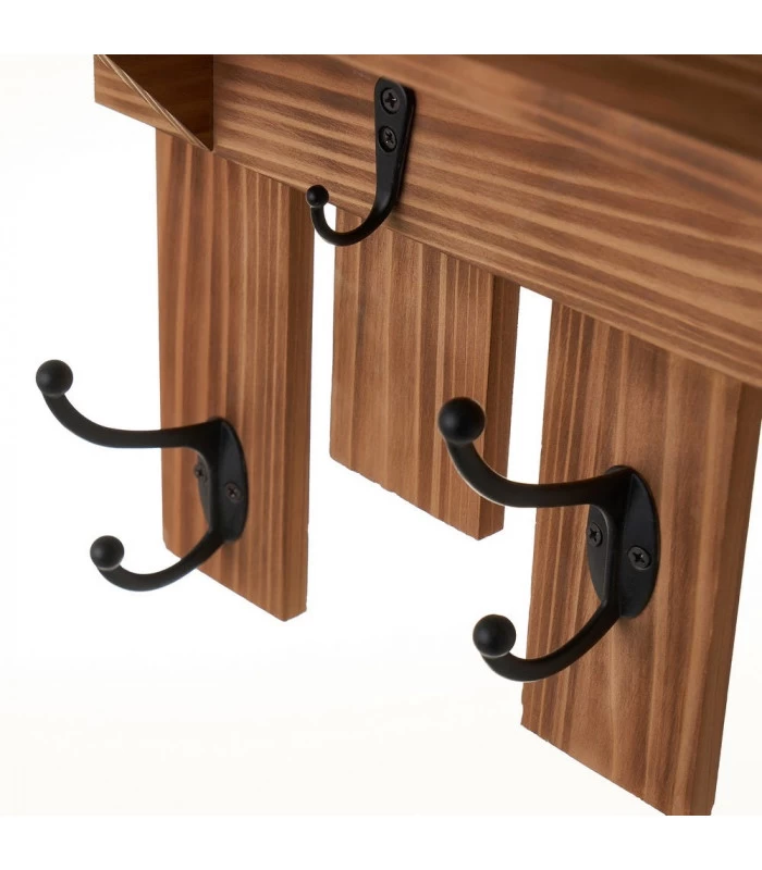 Portemanteau mural original en bois d’épicéa avec une étagère, esprit chalet de montagne.