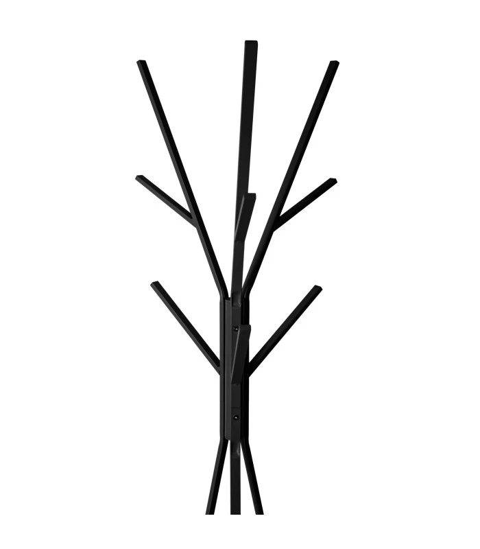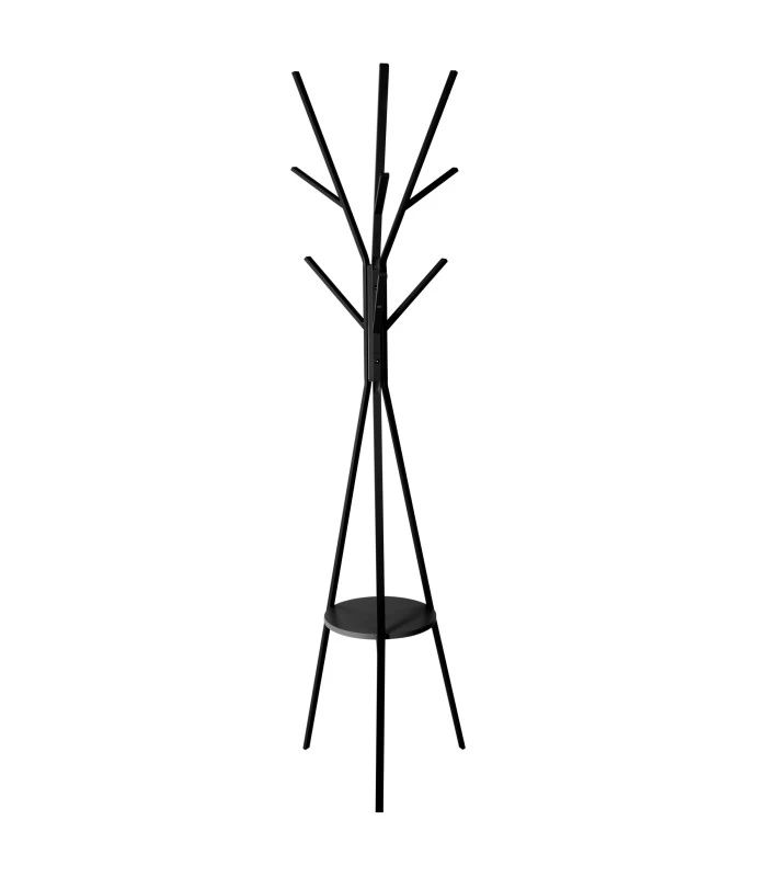 Portemanteau sur pied noir qui se caractérise par son style contemporain. Comprend 9 crochets et une étagère.