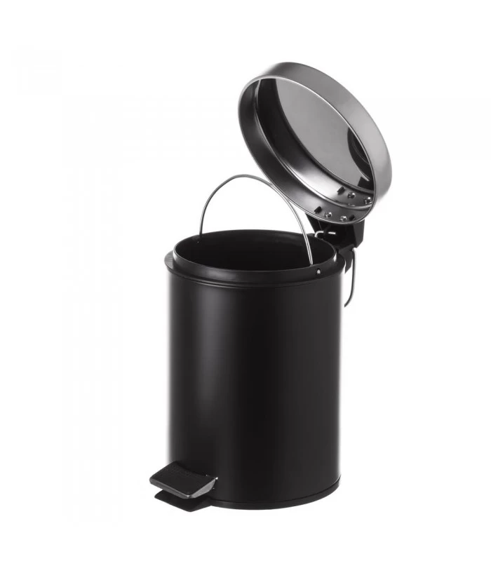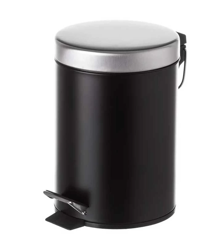 Poubelle à Pédale en métal Noir et chrome. Poubelle 3L avec bac intérieur en plastique noir amovible.