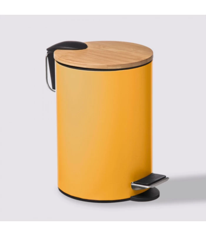 Poubelle Salle De Bain Métal Jaune Couvercle Bambou – 3L