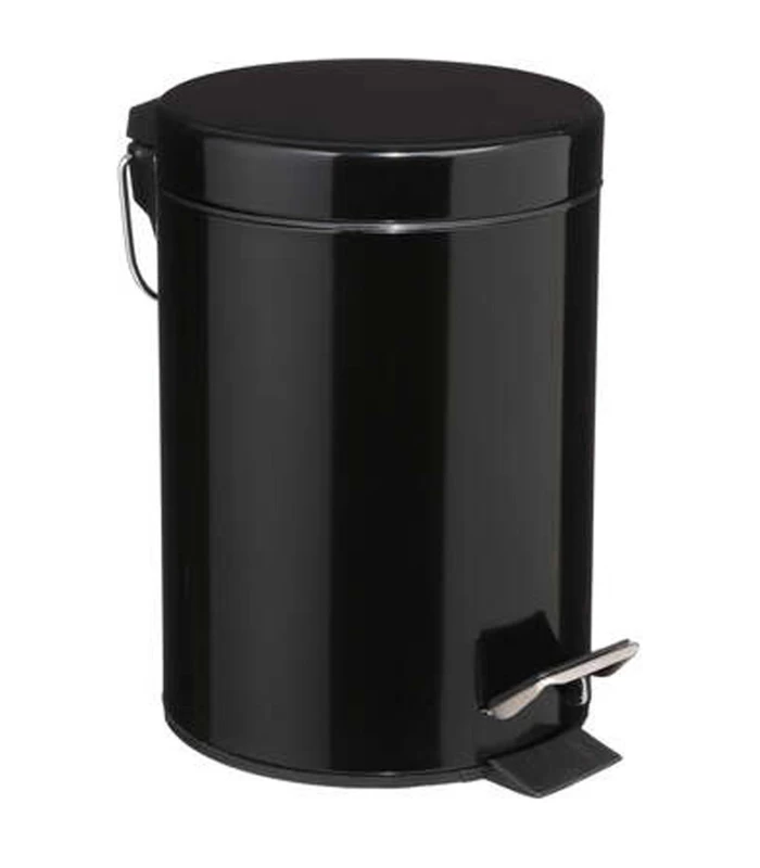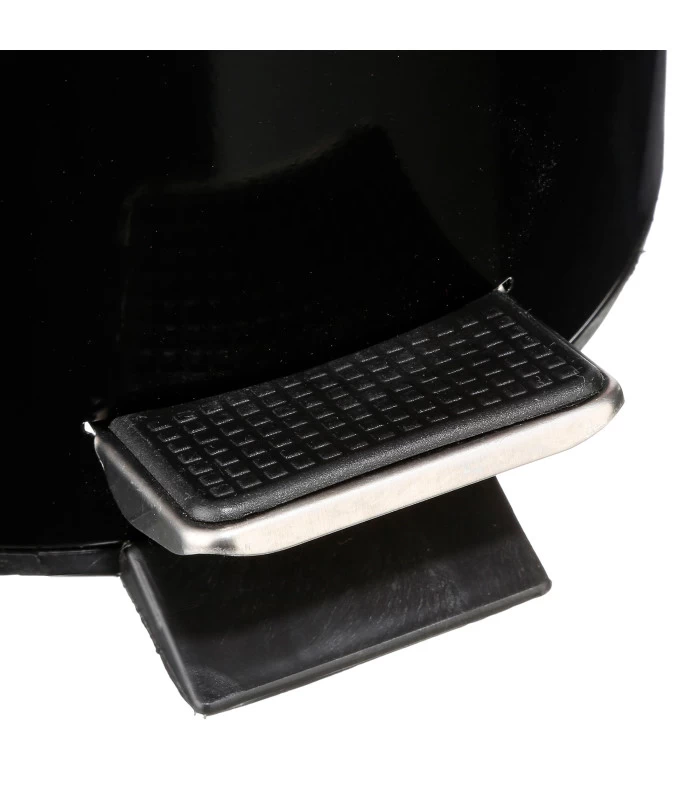 Poubelle de salle de bain à pédale sobre et élégante en métal noir. Seau intérieur en plastique noir amovible.