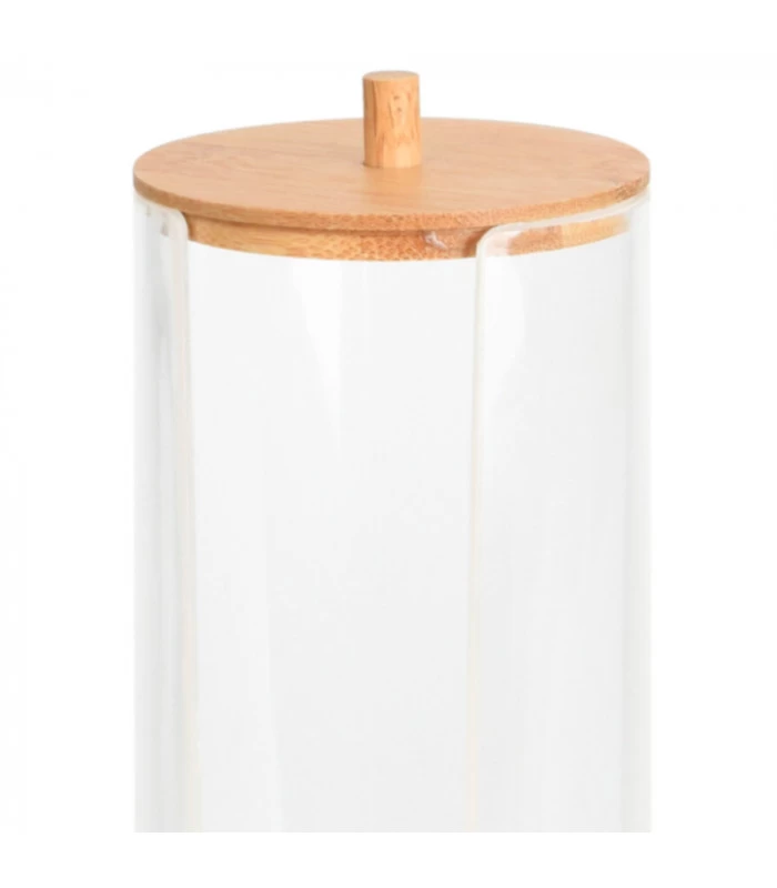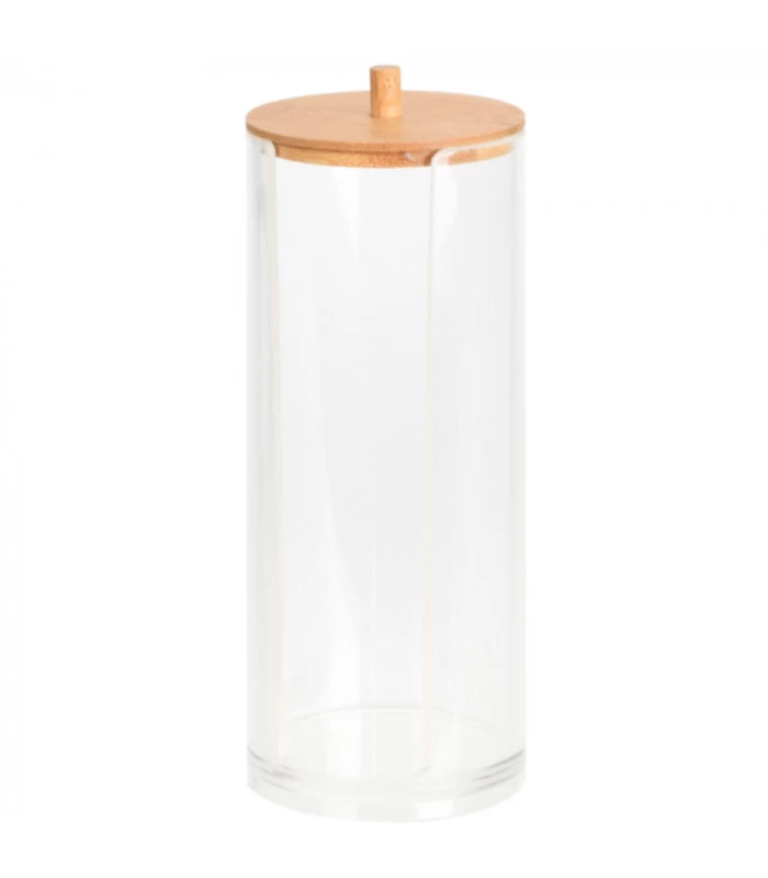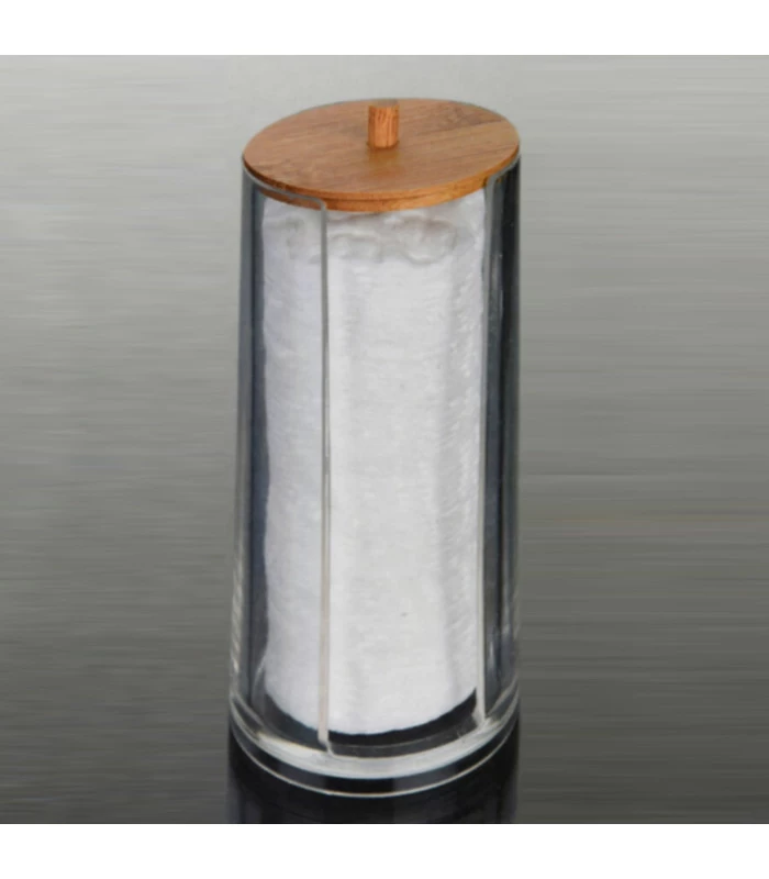 Ce rangement en bambou et acrylique pour coton rond disque est un accessoire de salle de bain indispensable.