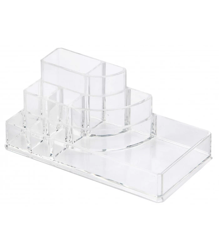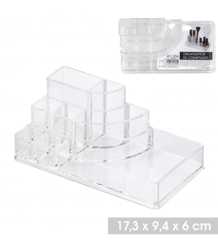 Ce rangement plastique pour maquillage est un accessoire de salle de bain indispensable. Les produits de maquillage sont mis en valeur et sont bien rangés!