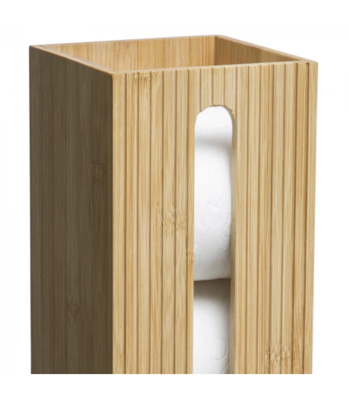 Rangement sobre et efficace des rouleaux de papier toilettes à poser à côté des toilettes.