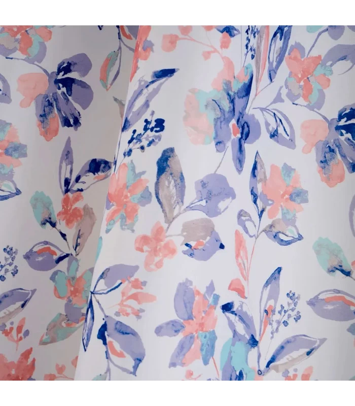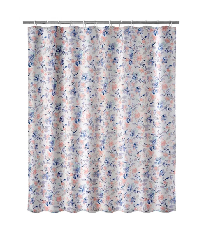 Rideau De Douche Blanc, Rose Et Bleu Floral