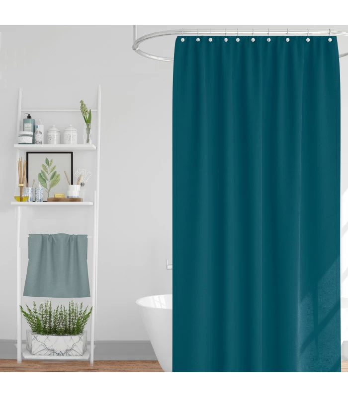 Rideau de douche en tissu 100% polyester. (12 Anneaux de rideau de douche blancs fournis). Lavage à 30°.