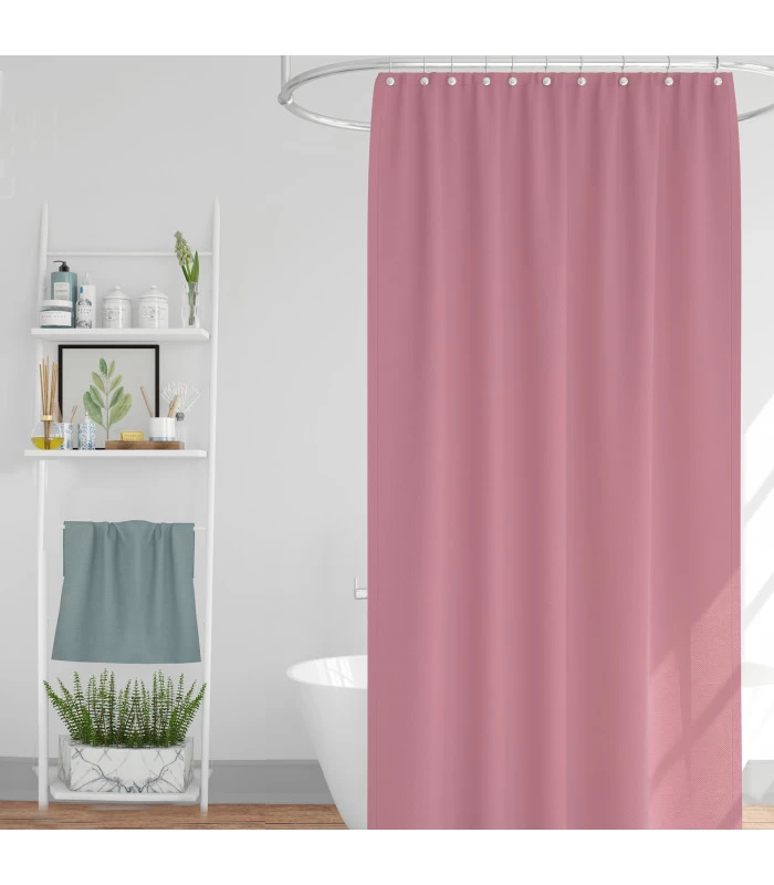 Rideau de douche en tissu 100% polyester. (12 Anneaux de rideau de douche blancs fournis). Lavage à 30°.