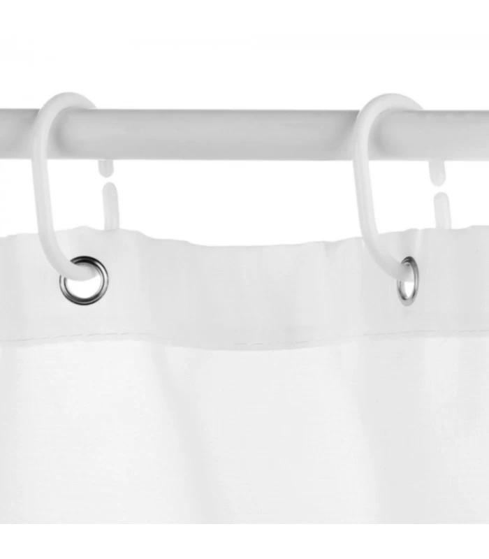 Rideau de douche en tissu polyester. (12 Anneaux de rideau de douche blancs fournis). Lavage à 30°.