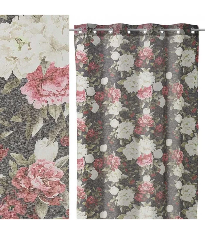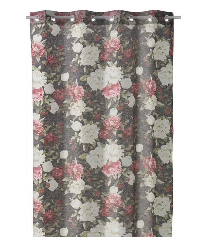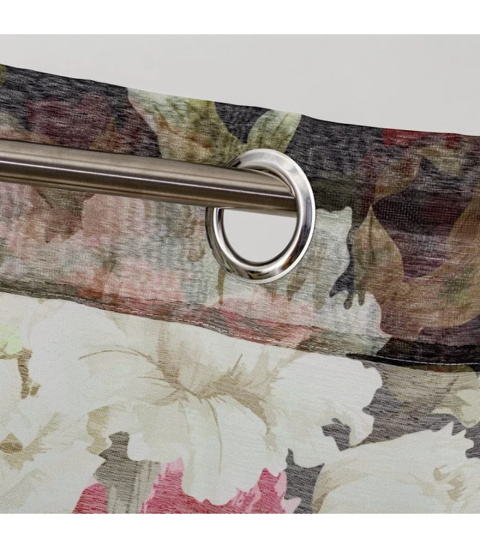Très beau rideau à œillets (8 anneaux de 4cm de diamètre) fleuri qui habille parfaitement une fenêtre.