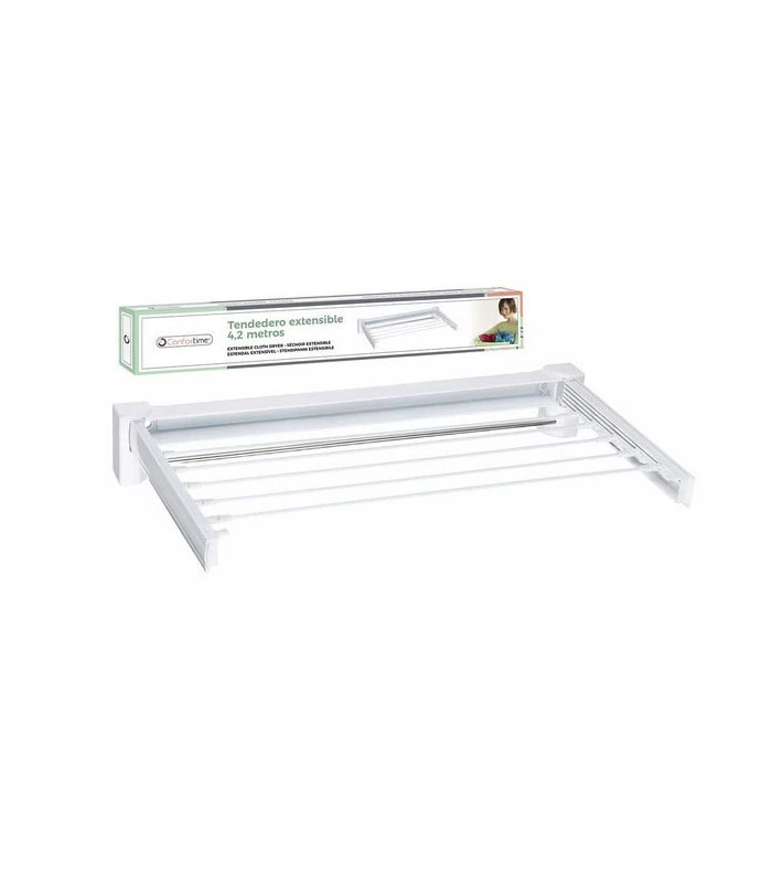 Séchoir à linge mural en ABS, Métal et Corde. Très pratique, ce séchoir d’appartement vous permet de mettre à sécher votre linge. Equivalent 4.2m de fil à linge.