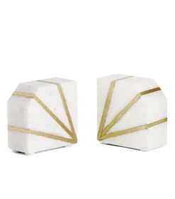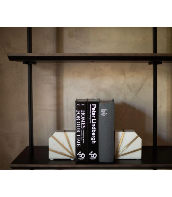 Serre-livres décoratifs en marbre blanc et métal doré.