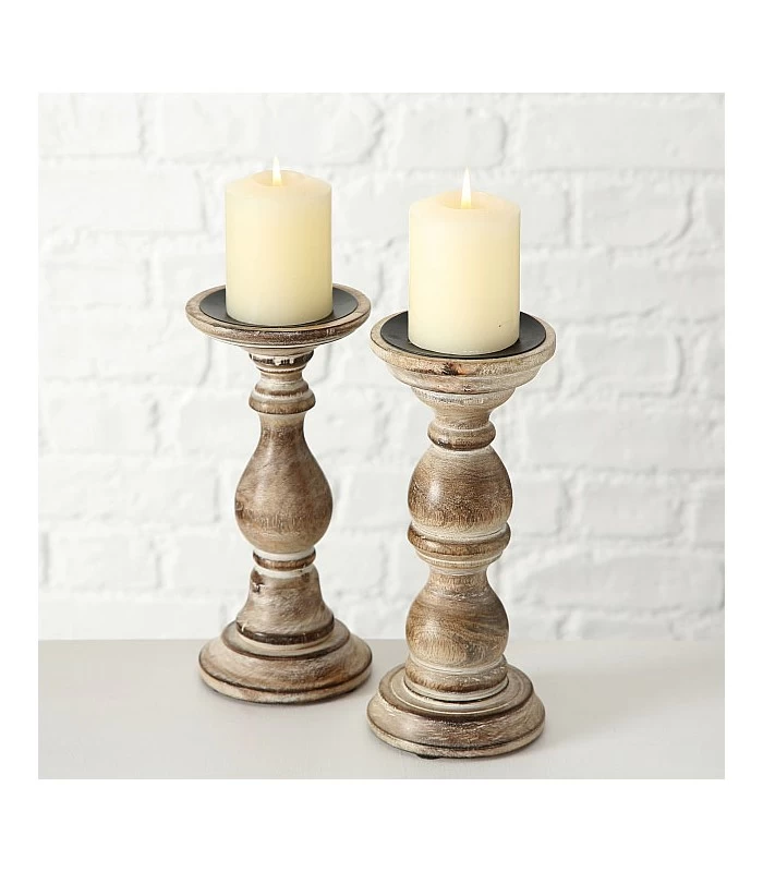 Set de 2 chandeliers en bois à poser pour décoration table (bougies non fournies).
