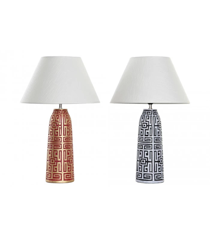 Set de 2 lampes à poser en résine rouge, dorée, noire et blanche.