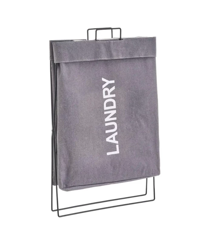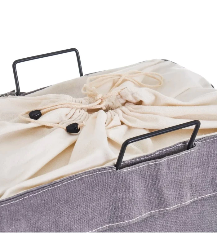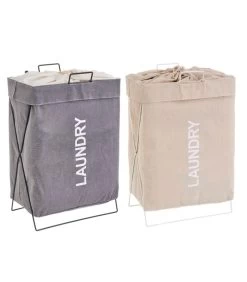 Set de 2 paniers à linge beige et gris avec structure métal.