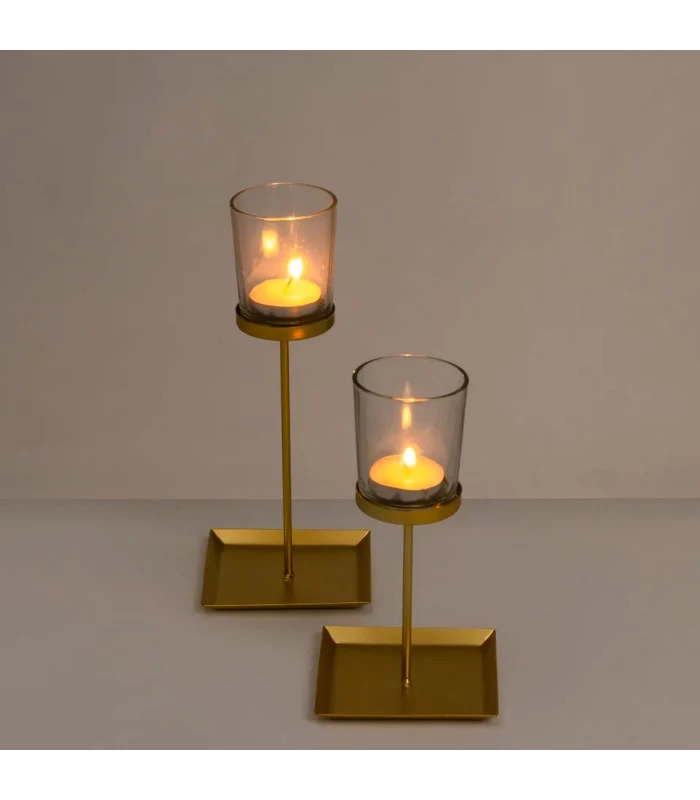 Très beau set de 2 photophores en verre et métal doré pour bougies. Idéal pour créer une ambiance douce et chaleureuse.