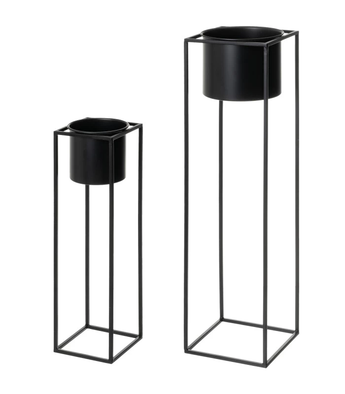 Set de 2 supports plantes en métal noir.