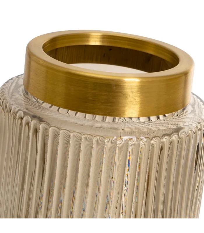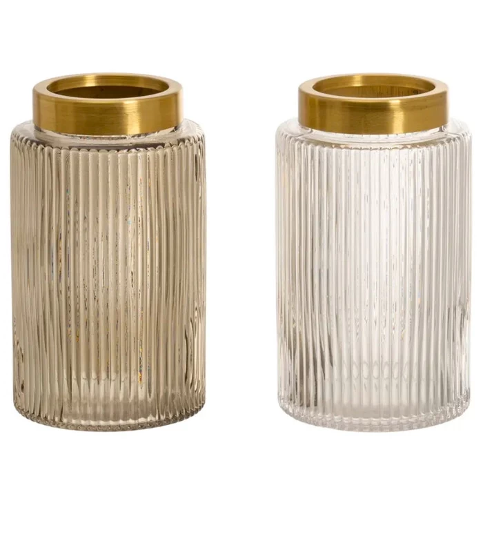 Joli set de 2 vases en verre strié et touche dorée parfaitement dans la tendance.