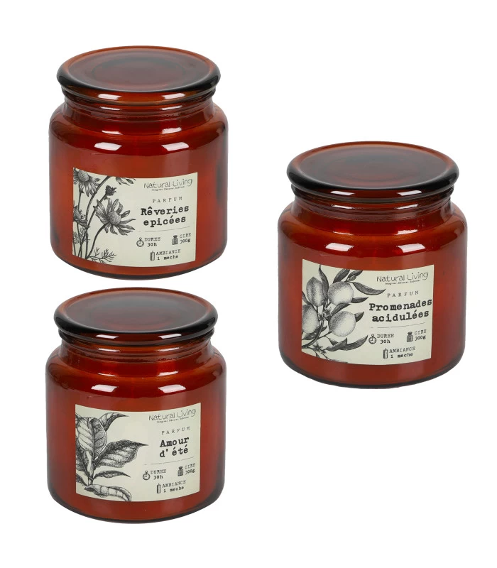 Set De 3 Bougies Parfumées Style Apothicaire 11x11x12cm