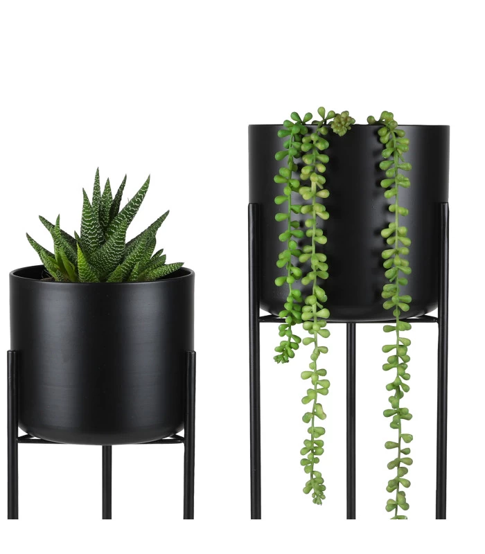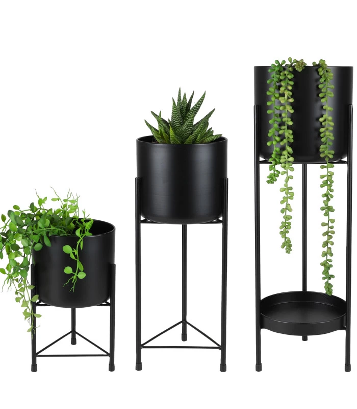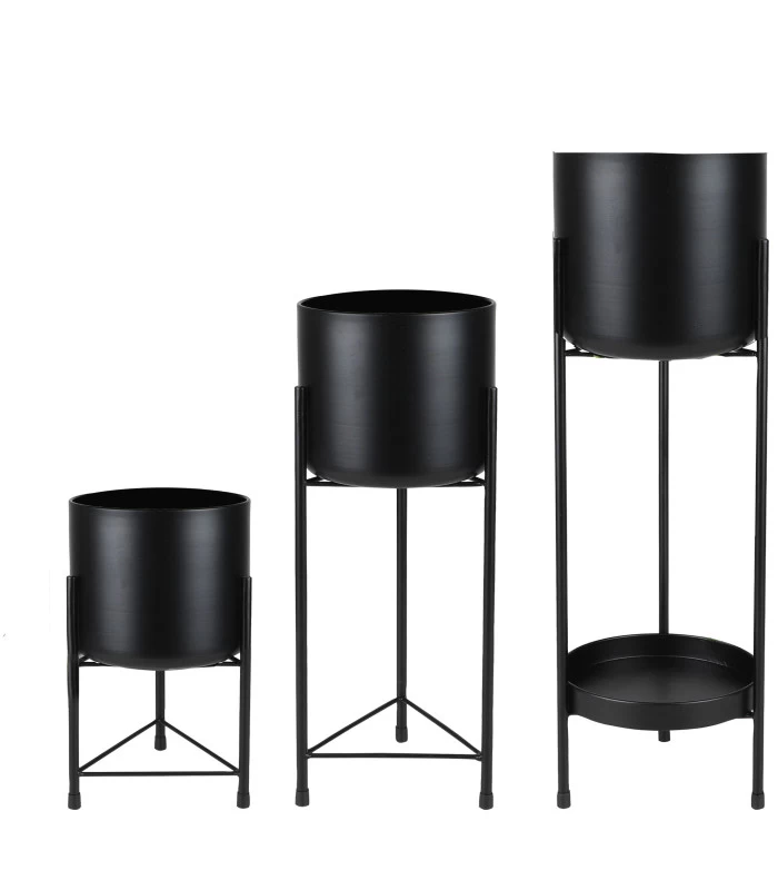 Set de 3 cache-pots sur pied en métal noir.