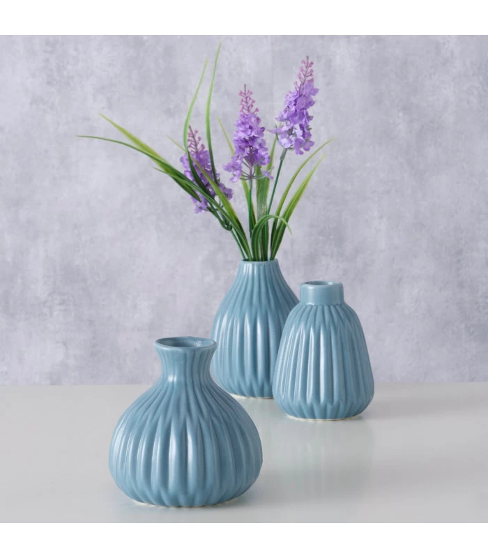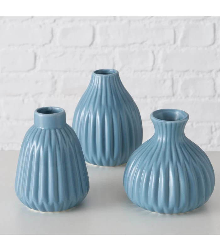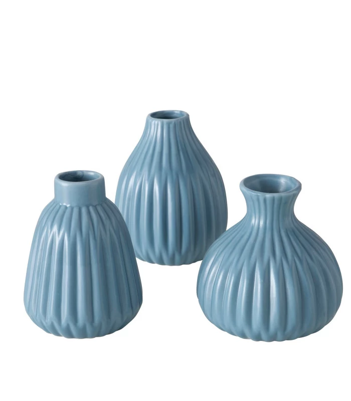 Set De 3 Petits Vases Design En Porcelaine Bleue