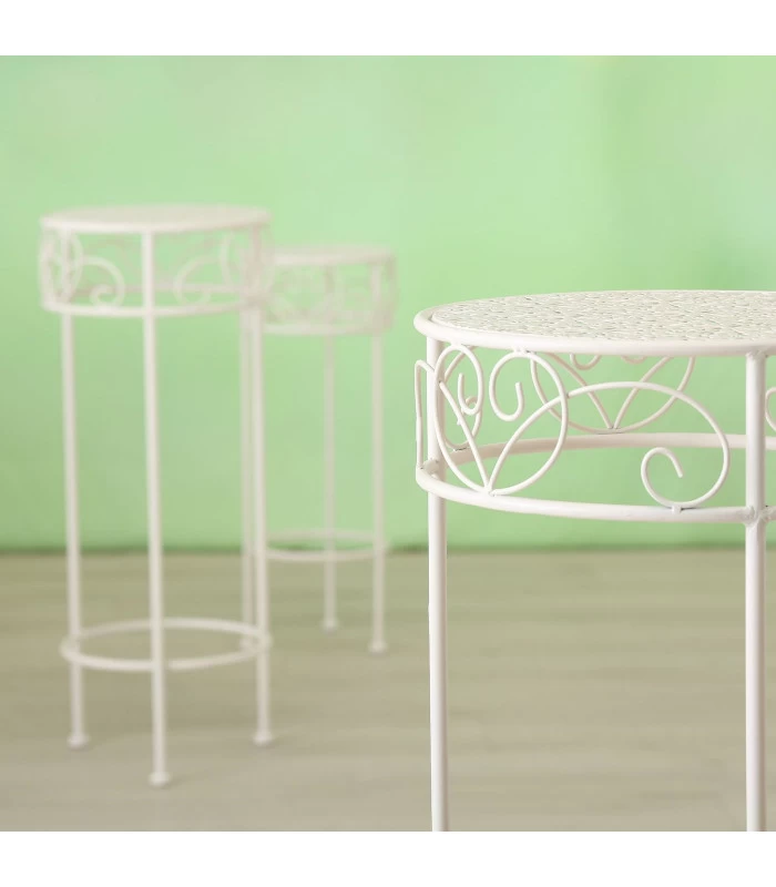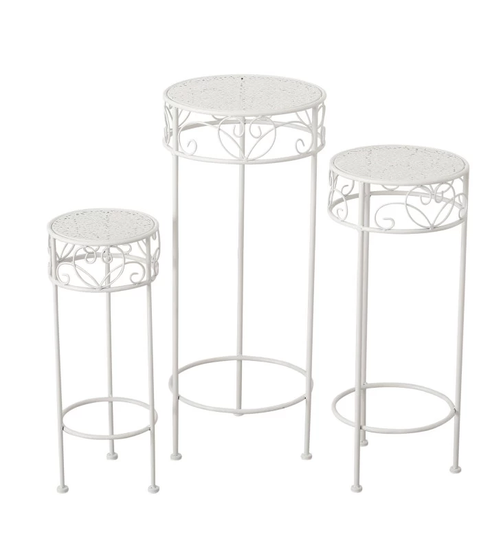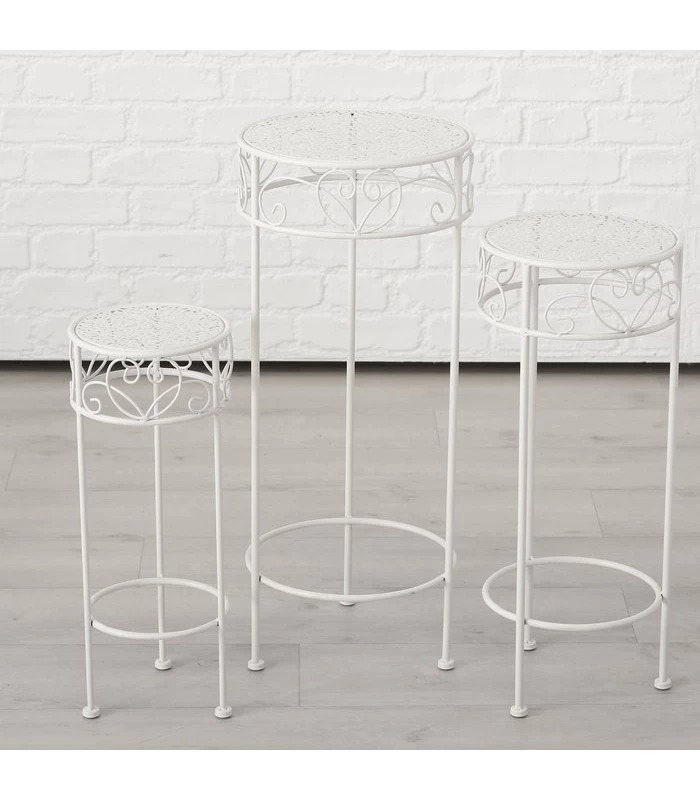 Set De 3 Supports Pots Plantes En Métal Blanc