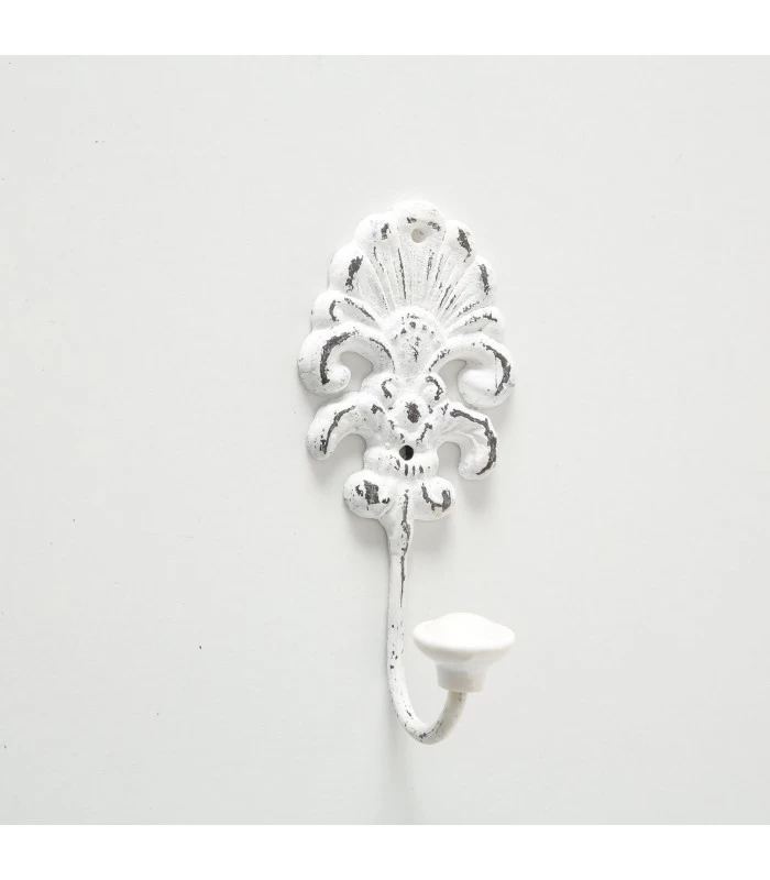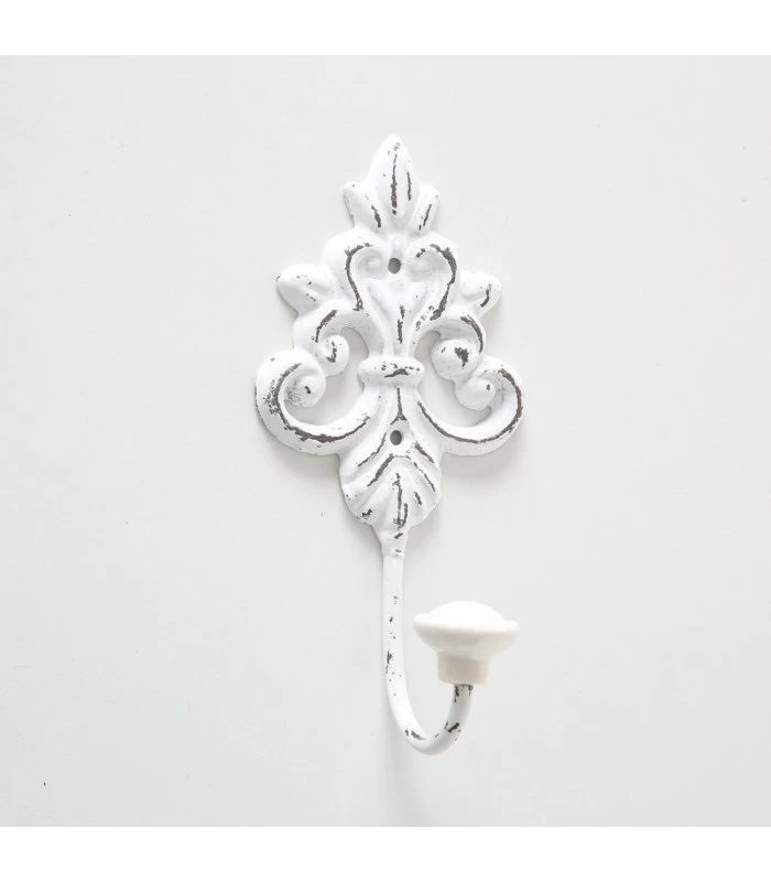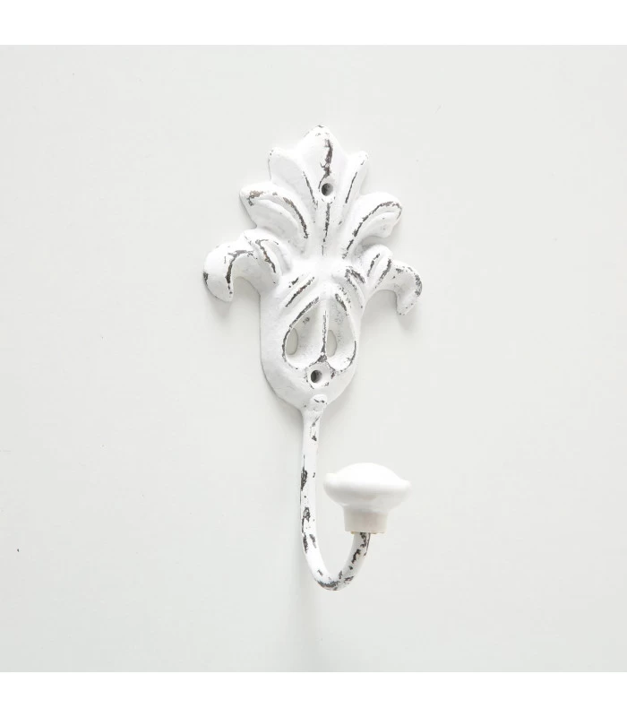 Set de 4 Patères Murale en métal vieilli blanc et bout en céramique. Ce set de 4 patères est très décoratif. Très pratiques, ces accroches peuvent aussi bien servir de porte manteaux que d’accroches serviettes, de porte torchons…