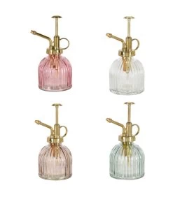 Set de 4 vaporisateurs pour plantes en verre multicolores et dorés, très déco.