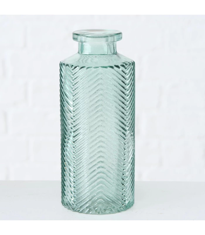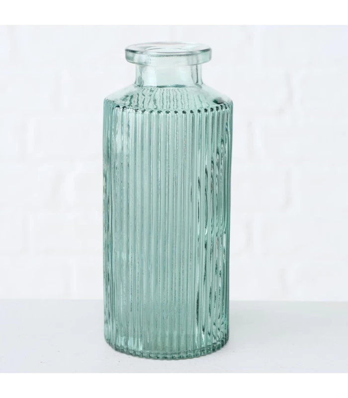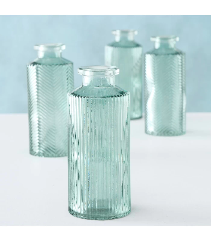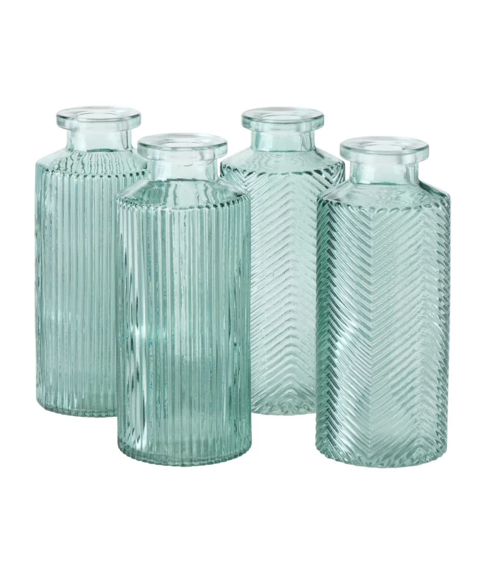 Set composé de 4 petits soliflores en verre à motifs embossés.